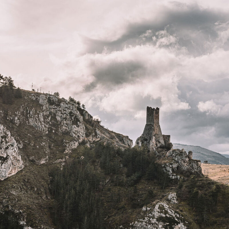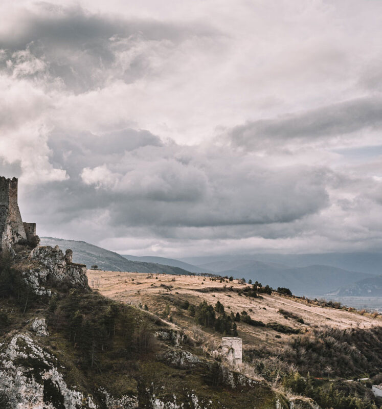 Hier verändert sich die Perspektive durch den Zuschnitt, sodass es so wirkt, als ob der Fotograf die Kamera nach oben angewinkelt hat und somit mehr auf den Himmel als auf die Berge und die Landschaft darunter abzielt.